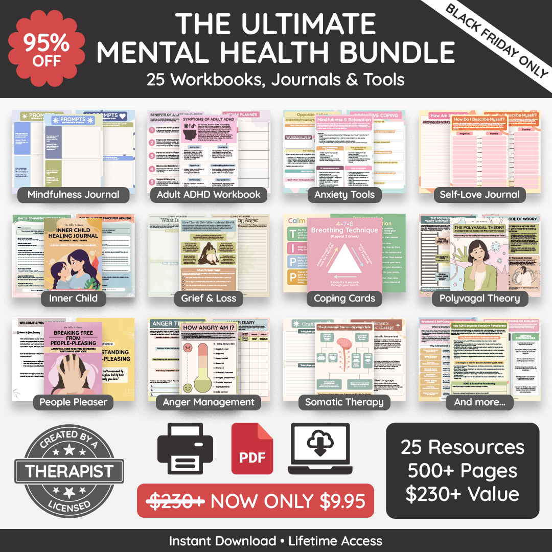 Being an adult with ADHD doesn’t mean you’re broken—it means your brain is wired differently, and you deserve tools that reflect that. Adult ADHD: Navigating Life With a Unique Mindset combines clear, compassionate psychoeducation with real-world strategies and beautifully designed planners to help you understand your brain and finally work with it. Inside, you’ll learn how the prefrontal cortex, limbic system, basal ganglia, and RAS affect attention, emotions, and motivation; explore the realities of late diagnosis; and discover the genuine strengths of the ADHD brain—creativity, hyperfocus, intuition, resilience, and more. Then you’ll anchor that insight in action with daily, weekly, and monthly planners, an executive functioning chart, ADHD cheat sheets, an “ADHD iceberg” activity to explore what’s under the surface, strategy posters for planning, time management, emotional control and more, plus thoughtful reflection questions to personalize your plan. Ideal for clients, therapists, coaches, or self-development, this toolkit turns scattered shame and overwhelm into understanding, structure, and a solid, hopeful way forward.