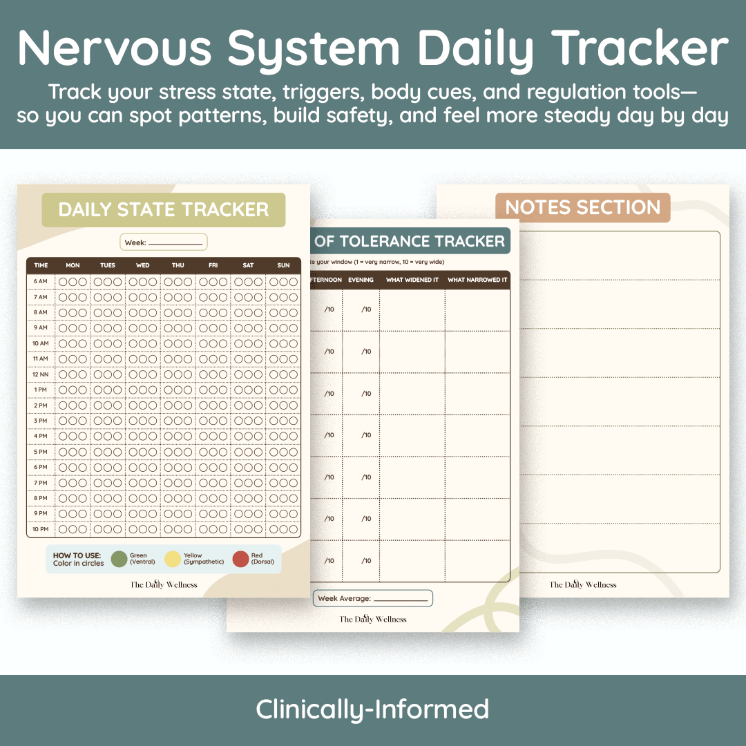 Built FOR traumatized nervous systems, not adapted from wellness fluff — These aren't generic "calm down" tips repackaged. Every tool is designed around polyvagal science and how your survival responses actually work — body-first, shame-free, trauma-informed