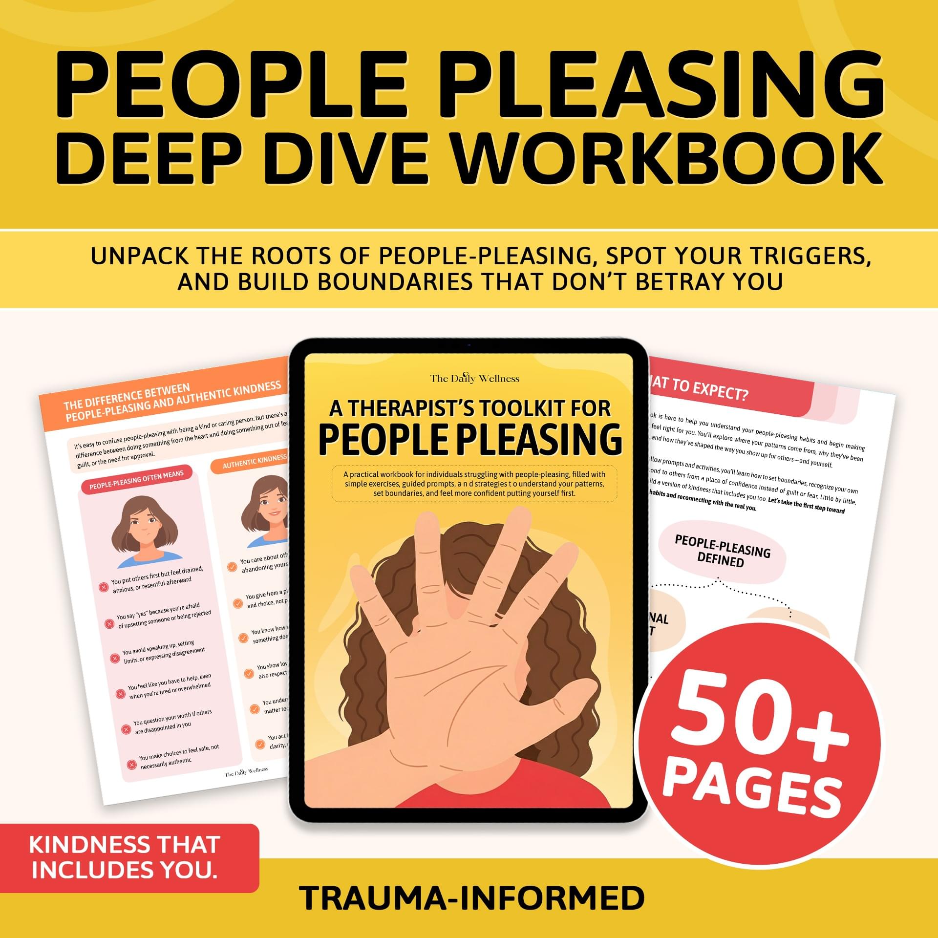 PART 6: Boundaries & Self-Prioritization — Put yourself first without the guilt. The Boundaries for Self-Love Workbook, People-Pleaser Recovery Workbook, and 100 Boundary Scripts & Phrases give you the exact words and framework to stop abandoning yourself for everyone else.