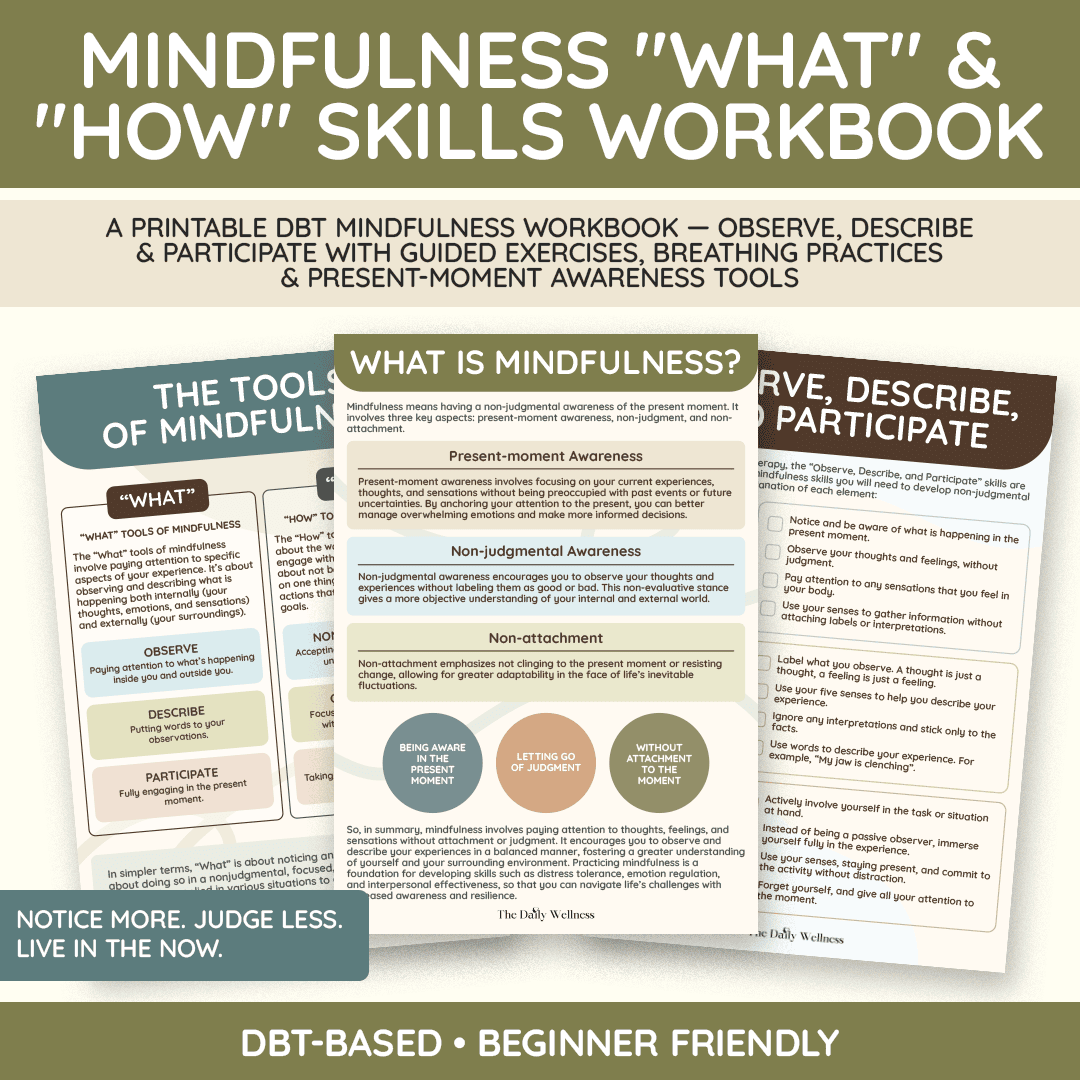 ✅ Mindfulness "WHAT" & "HOW"  Skills Workbook