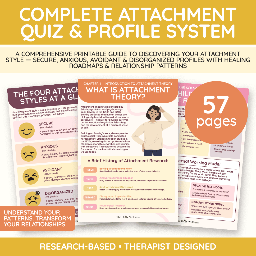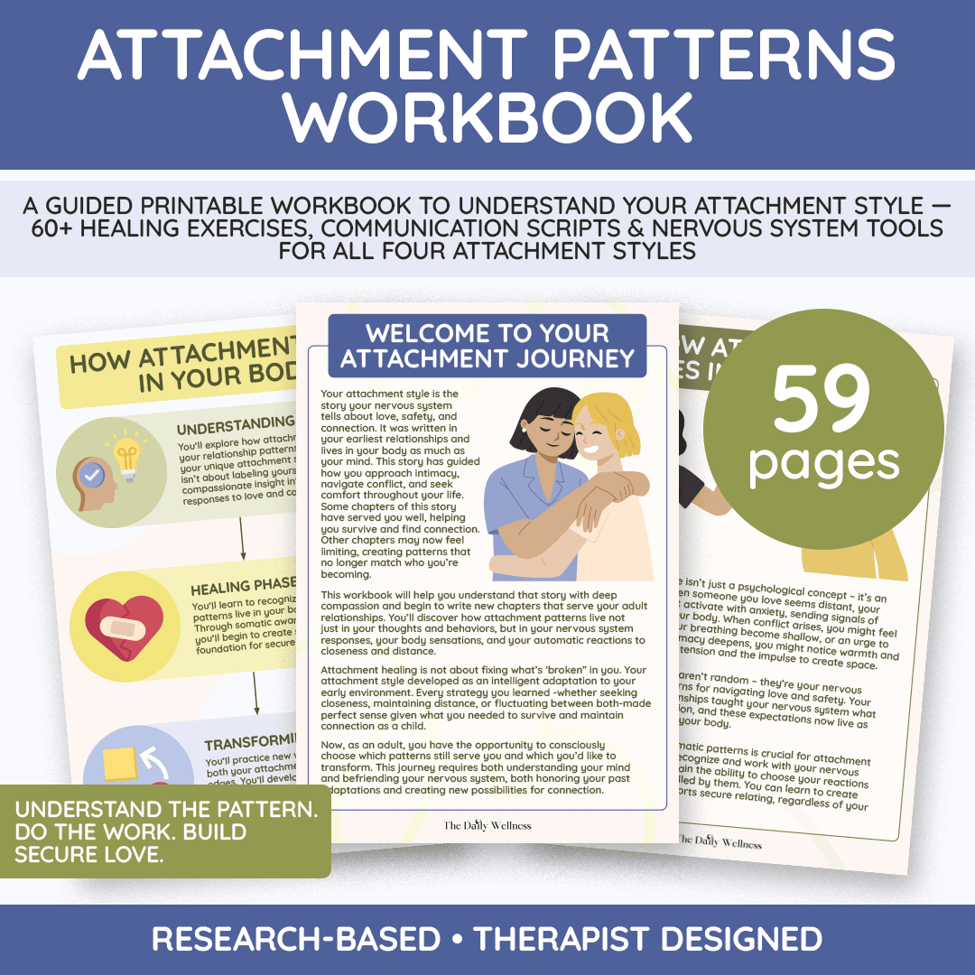 This bundle draws on attachment theory, Polyvagal theory, IFS, and internal reparenting frameworks. You're not going to be told to "set better boundaries" or "love yourself first." You're going to be guided through the actual mechanisms: protest behaviors, deactivating strategies, trigger mapping, and the nervous system patterns underneath all of it.