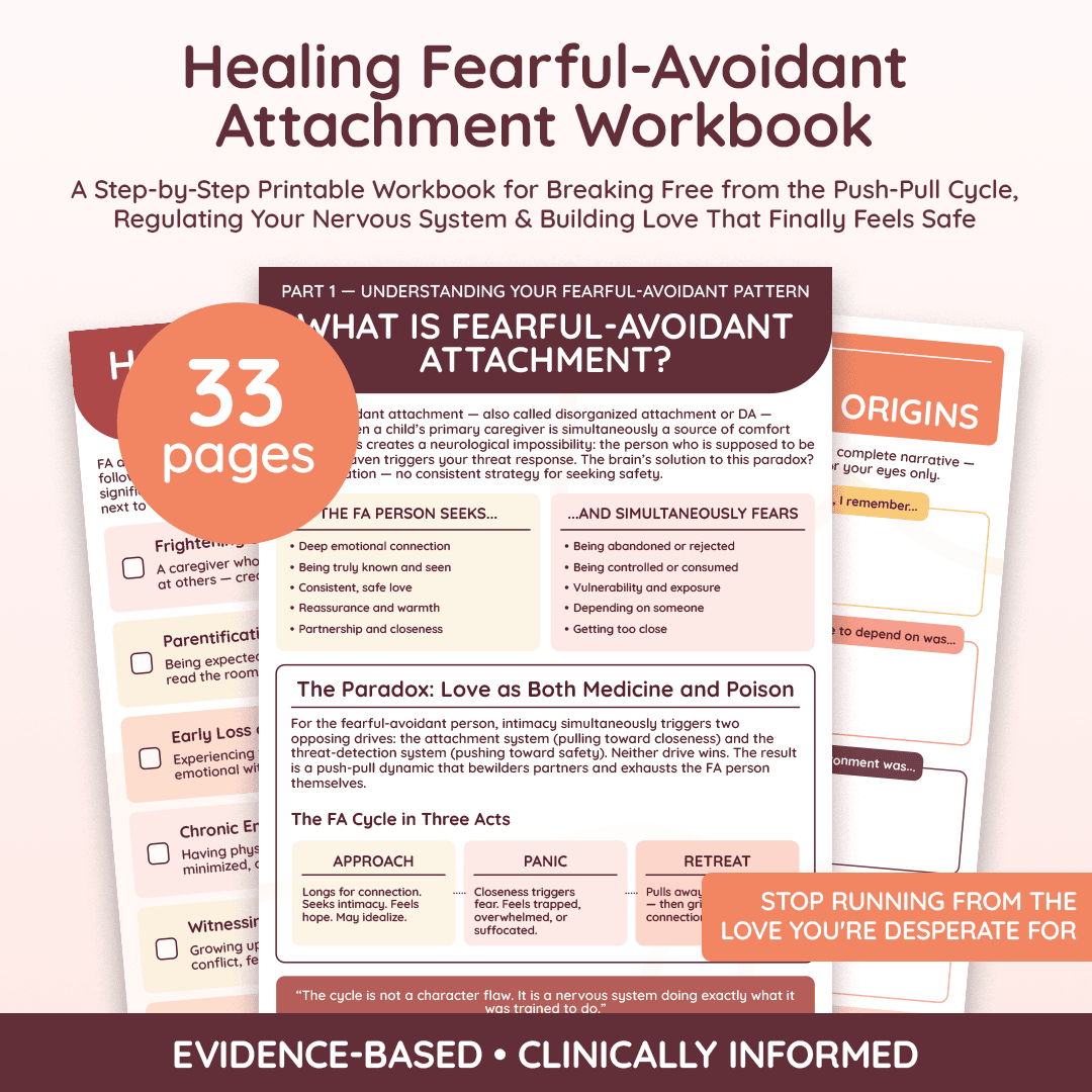 ✅ Covers the relationship dynamics most resources completely miss. The anxious-avoidant trap. Fearful-avoidant push-pull. Codependency as an attachment wound. Why you keep choosing the same unavailable person. This bundle goes where others don't, with dedicated tools for each specific dynamic so you're not trying to apply generic advice to a very specific pattern.